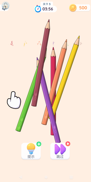 4.在第三关里,玩家得依据颜色提示对这些彩色铅笔进行排列。