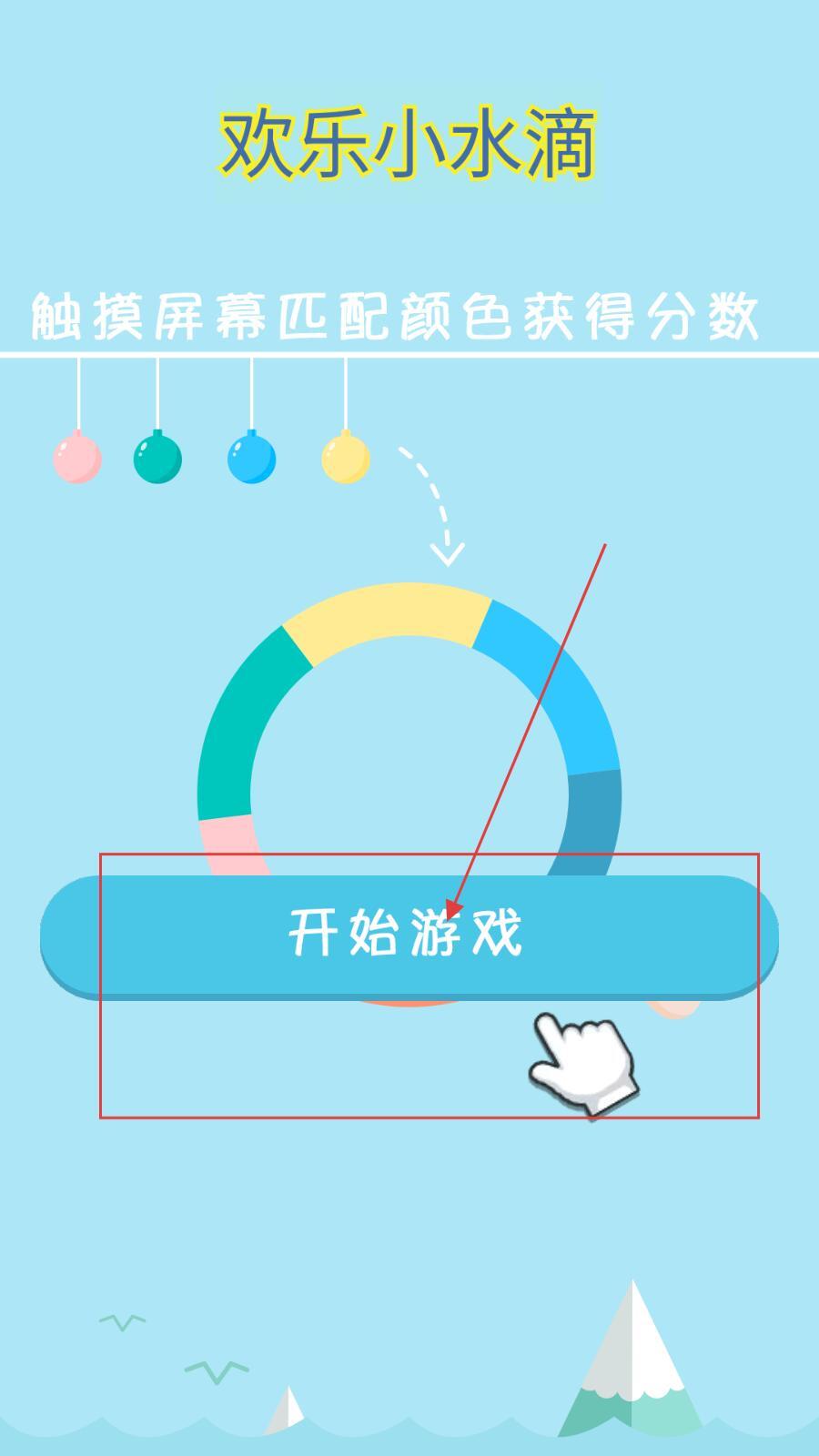 1、点击“开始游戏”进入关卡后,留意上方的彩色水滴与圆环的颜色区域;当水滴开始下落时,转动圆环使其与水滴颜色相匹配,即可完成消除并获得分数。