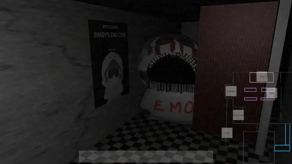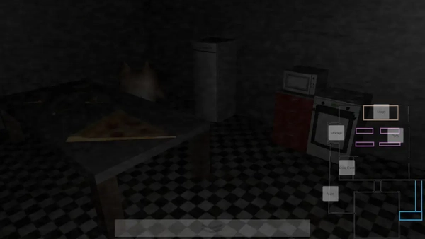 2、游戏主界面由多个监控画面构成,按下相应数字键即可切换不同区域的摄像头,从而观察玩偶的活动轨迹。