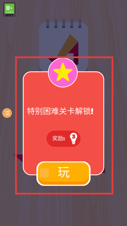 4、完成图案拼接后,静待游戏判定;若判定通过,会弹出关卡解锁提示界面,提示特别困难关卡已解锁并展示奖励内容,点击“玩”按钮就能进入解锁的特别困难关卡继续游戏。