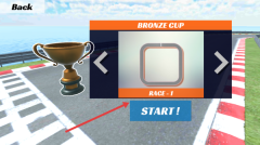 2、进入BRONZE CUP青铜杯赛事页面后,选择RACE-1,点击START按钮即可开启环形赛道的自行车竞速项目。