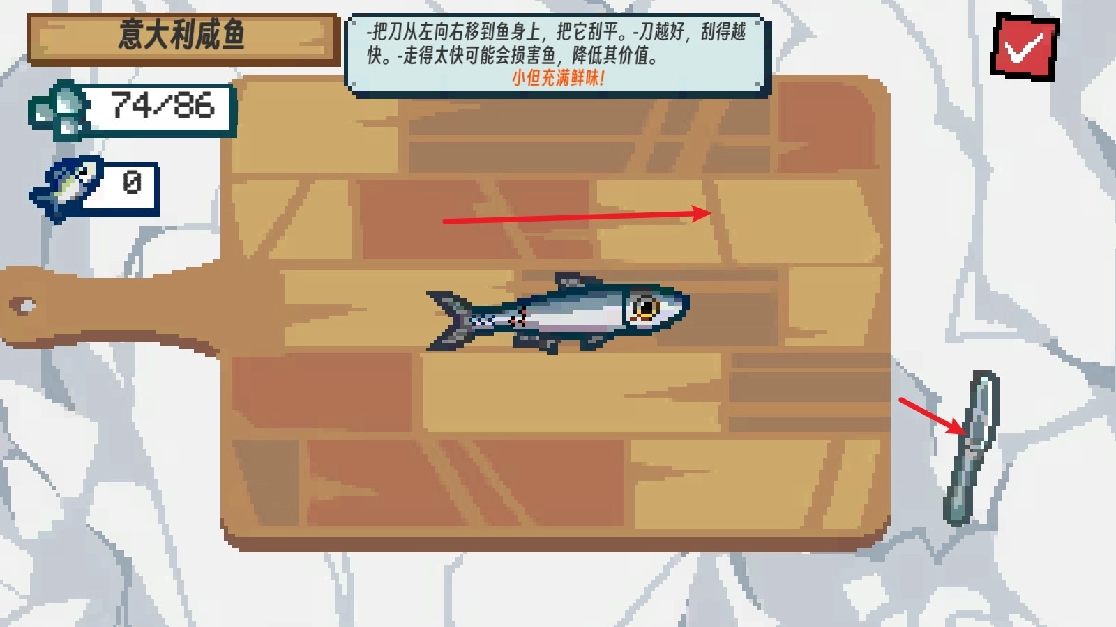 3、钓上来鱼之后,我们就可以前往船舱当中刮鱼鳞了。