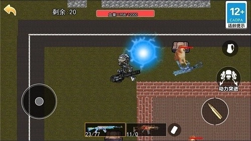 1、玩家可以通过滑动屏幕控制角色移动、瞄准和射击敌人,并使用自己的操作技能击败敌人。
