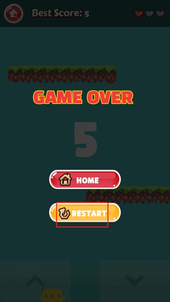 2、操控小鸡跳跃时,要留意时机,让小鸡精准落在草地平台上,防止掉进沟壑;要是不慎掉落,剩余的爱心数量就会减少。