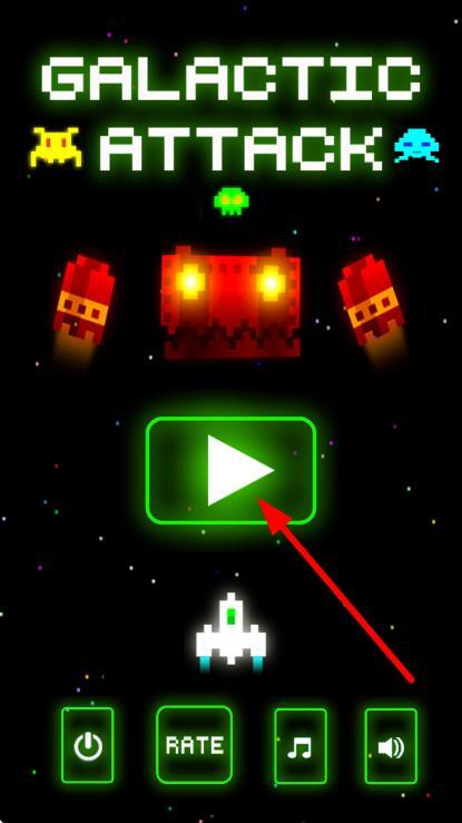 进入主界面后,我们点击箭头所指的绿色按钮,即可进入太空射击关卡的选择界面。