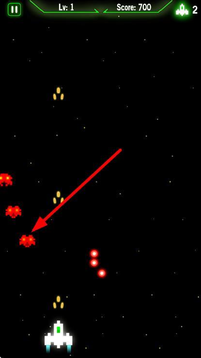 3、战斗过程中,你需要操控飞船移动来躲避敌人的子弹,同时瞄准箭头所指向的红色敌人,通过射击将其消灭以获取相应分数。