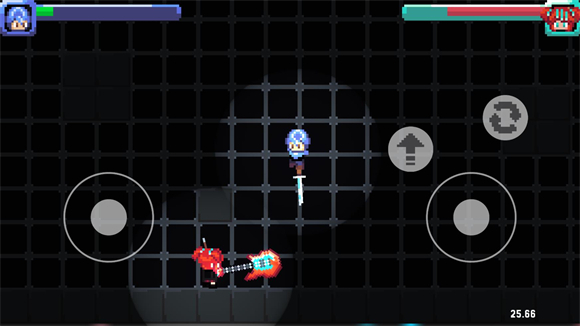 3、正式开始后,左侧负责控制角色移动,右侧则分布着攻击、闪避以及切换武器的按钮。