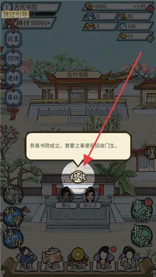 1、院长沉浸式开局:一开局便执掌规模宏大的古代校园,与书生、夫子等各类人物互动,开启书院执掌的经营旅程。