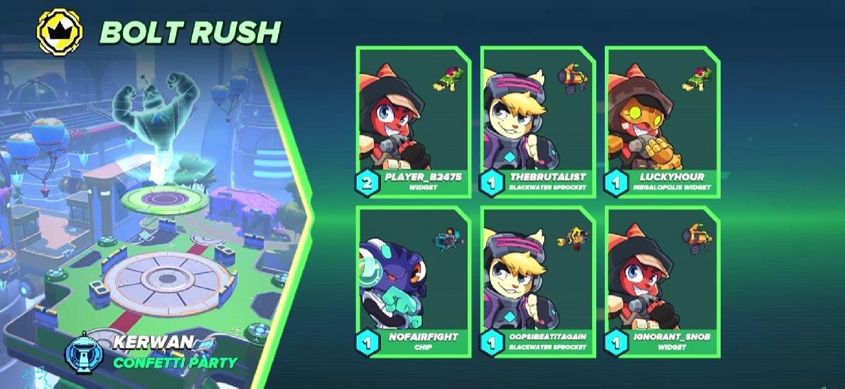 拉杰特与克拉克乱斗战士(RatchetandClank:BTN)是一款制作精良的多人对战竞技游戏,游戏采用可爱的卡通3D画风,玩家可以自由探索不同的竞技场地图,熟悉地图后即可开启战斗,合理运用每个角色的战斗特性,努力带领团队赢得胜利。