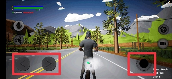 3、驾驶汽车时,左侧按键用于操控汽车方向,右侧轮盘则负责控制车辆的前进与后退。
