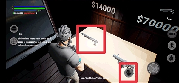 5、在武器商店里,你能够选购各类枪械,把视角对准枪械后点击手掌形状的按钮就能获得它