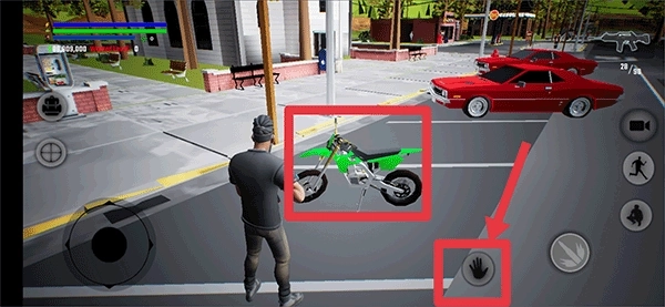 2、将角色移动到汽车旁边时,点击手掌按钮即可驾驶