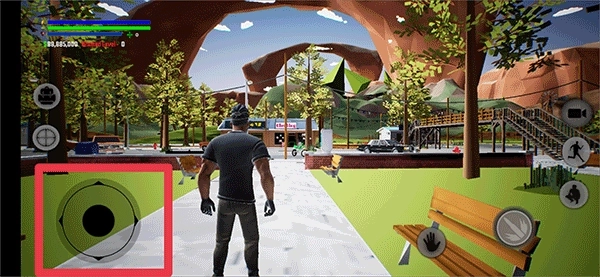 1、游戏里玩家可以自由探索,左侧控制角色移动,右侧调整移动方向