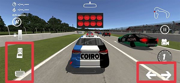 5、等红灯全部亮起结束后,就可以通过左边的油门来操控赛车前进,右下角的箭头则用于调整方向。