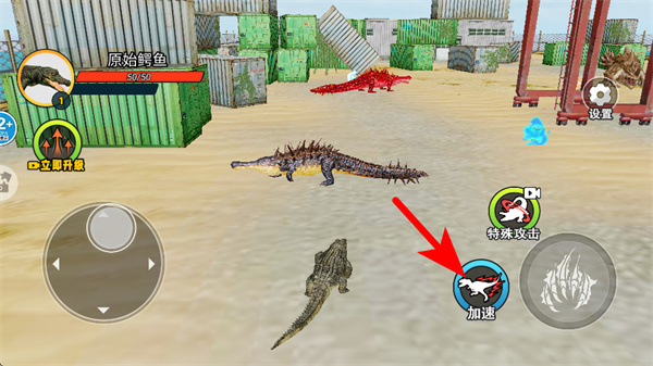 3、跟随红色箭头的指引,借助加速按钮让角色快速移动,这样既能避开敌方生物的攻击,也能更迅速地接近目标道具或目标生物,从而提高行动效率。
