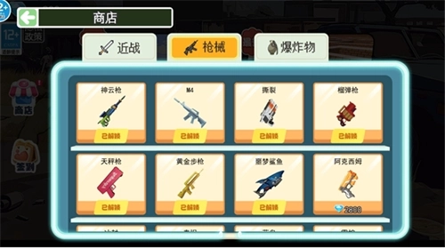 3、玩家在正式这开始战斗前可以先在商店中解锁感兴趣的武器,以便在战斗中使用;