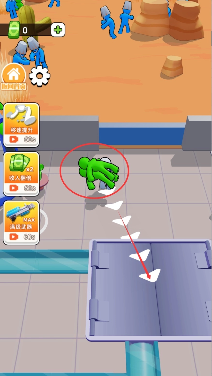 1、僵尸捕捉环节,玩家需运用升级后的装备在关卡内捕捉僵尸,不同等级的枪械分别对应不同体型的捕获目标。