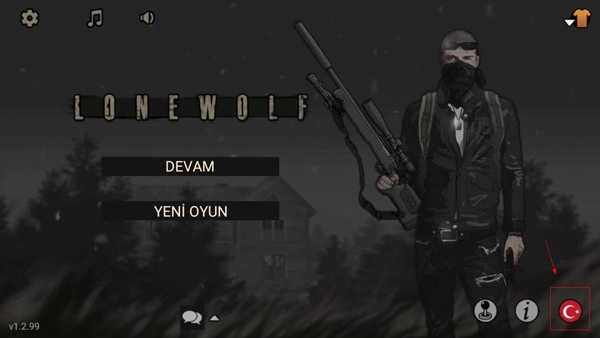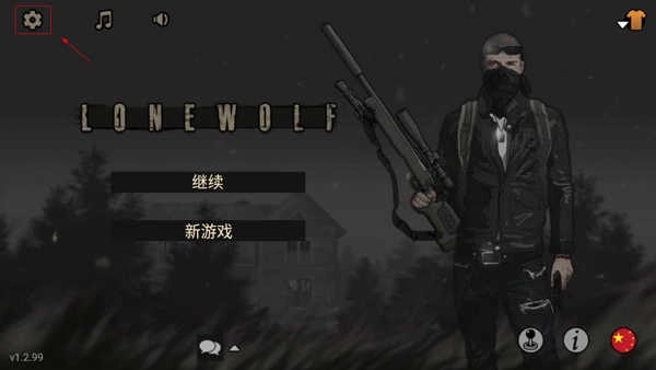 启动《Lone Wolf》中文版后,在主界面的右上角找到并点击旗帜形状的图标。