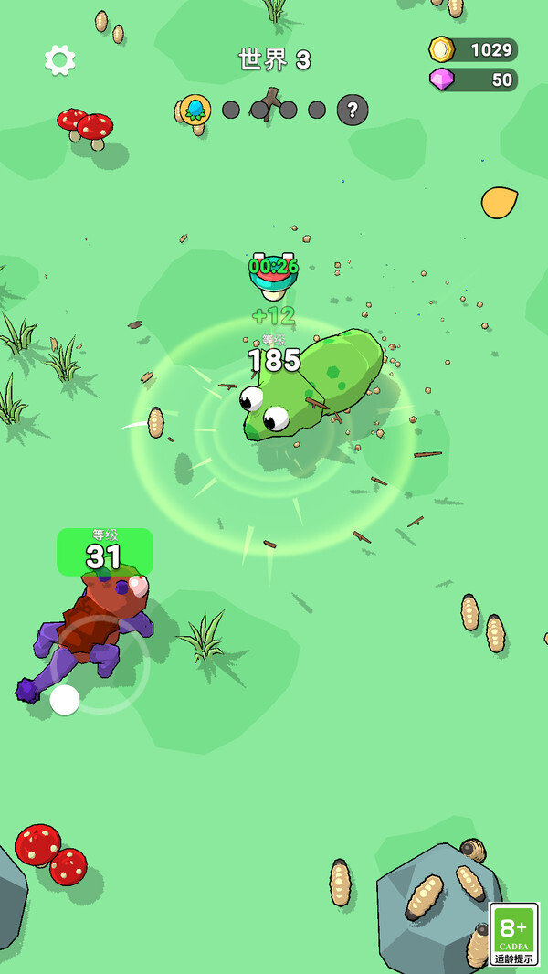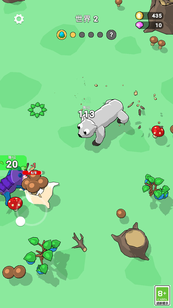 1. 滑动屏幕可操控生物移动,当生物靠近比自身弱小的目标时,吞噬动作会自动触发。