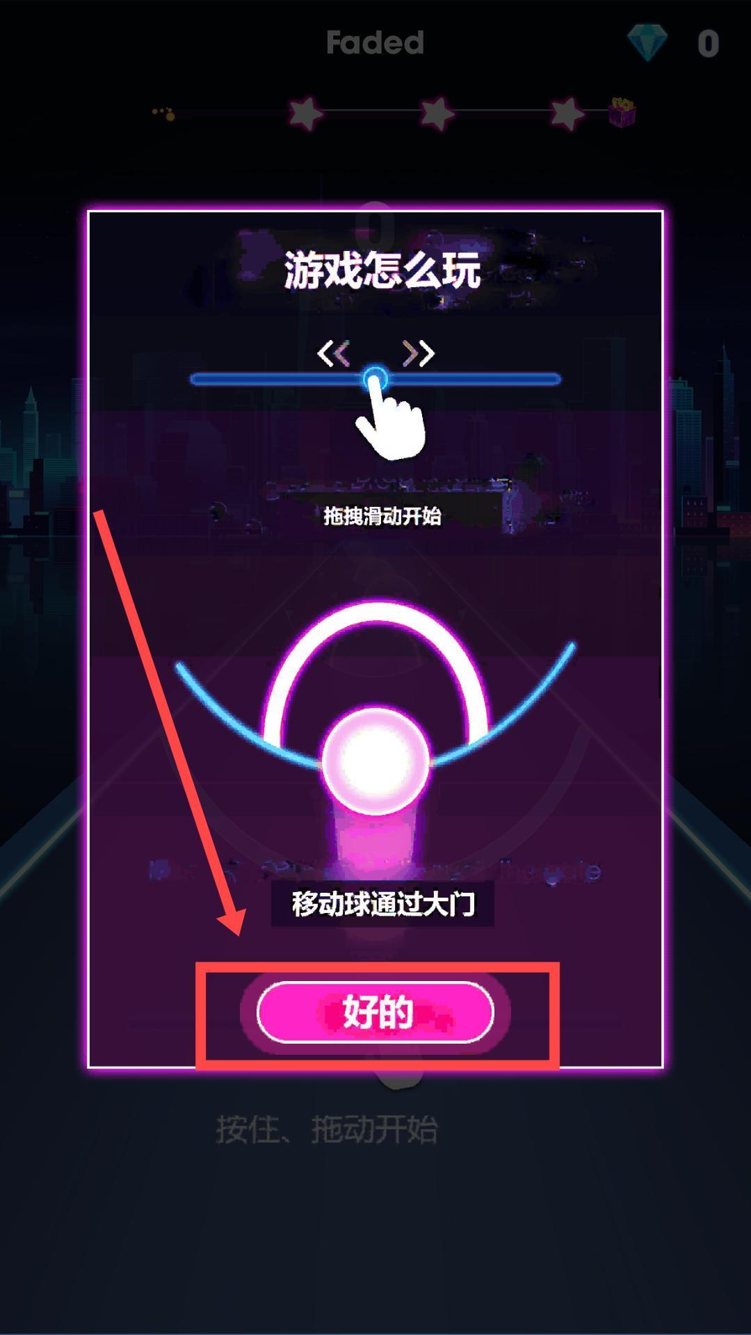2、游戏开始前,请先查看玩法指引并点击“好的”,同时记住拖拽滑动、移动球穿过大门的操作要点,精准执行这些操作有助于提升游戏表现。