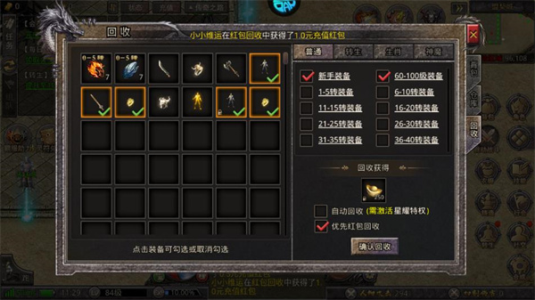 3、红包回收机制:游戏内的所有装备均能借助红包回收系统,兑换成丰厚的充值红包。装备的等级越高,可兑换到的红包数量也就越多。