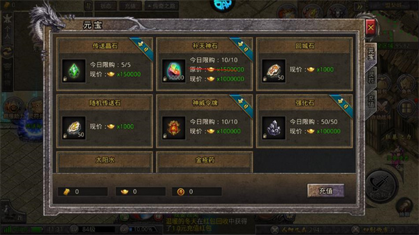 8、元宝商城与灵符商城的每日限购商品建议尽量全部购买,每天都能让自身实力得到不错的提升!