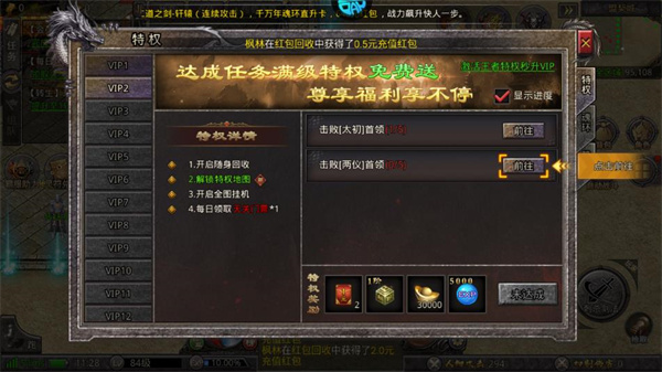 6、VIP专属礼包内含海量助力逆天改命系统升级的道具,可尽情使用以实现战力的大幅领先。