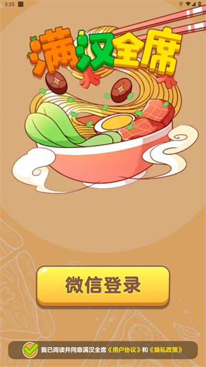 满汉全席,一款消除食材即可领取福利的闯关小游戏。游戏关卡内设有大量食材,玩家需将相同食材进行叠加并成功消除,以此获取丰厚奖励;此外还有众多趣味活动可供参与,完成相应任务后更能解锁额外奖励。
