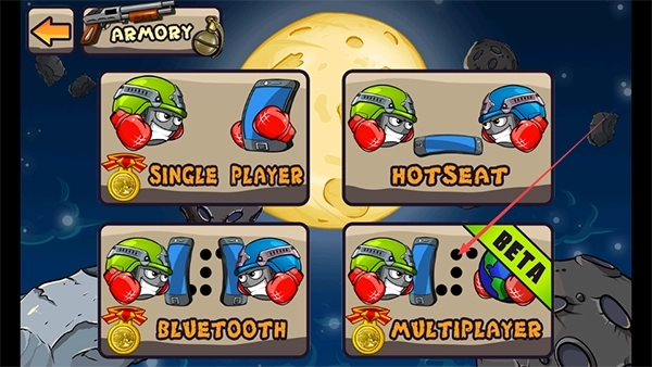 《最终的枪战》(Warlings)是一款卡通风格的射击对战游戏,提供单人AI对战、双人同设备对战以及蓝牙联机对战等多种模式。在游戏里,玩家每回合能移动特定距离,选择合适的躲藏位置后进行射击或回复生命值,策略性非常强。游戏拥有六种不同地形的战场,包含海陆空等多个场景,角色和武器的种类也十分丰富。它的玩法与《百战天虫》相似,十分考验玩家的用枪技巧和战术配合能力。另外,游戏还设置了8大主题场景、80个小关卡、生存模式以及小游戏,并且支持全球排行榜和成就系统,让玩家能够充分体验到热血沸腾的枪战乐趣。