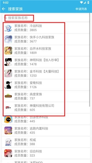 3、若选择加入其他家族,系统将展示所有家族列表,同时支持通过输入家族名称进行搜索,以便快速找到您想要加入的家族。