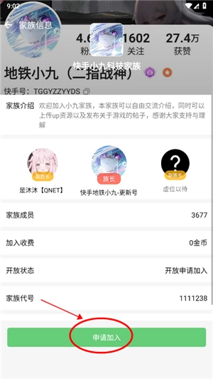 4、在家族信息页面,点击申请加入;