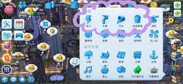 《模拟城市:我是市长》的核心玩法聚焦于城市的建造与发展。一座城市的繁荣并非仅靠高楼大厦支撑,还需要各类资源与设施的协同支持。基于这一理念,游戏设计者将城市建设划分为住宅建筑、资源建筑和发展建筑三大类别。