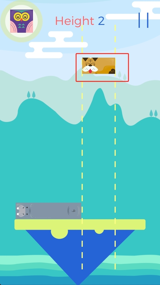 2、注意观察空中带有老虎图案的方块的下落路径,结合下方的平台来调整方块的位置,使其能够精准地完成堆叠。