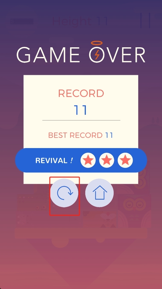 3、当游戏结束后,要是你还想再玩一次动物岛方块堆叠关卡,只需点击左侧的重置按钮就能重新开始挑战,继续向着更高的高度记录发起冲击。