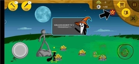 3、点击左上角的图标就能召唤火柴人,你可以亲自操控火柴人参与战斗。