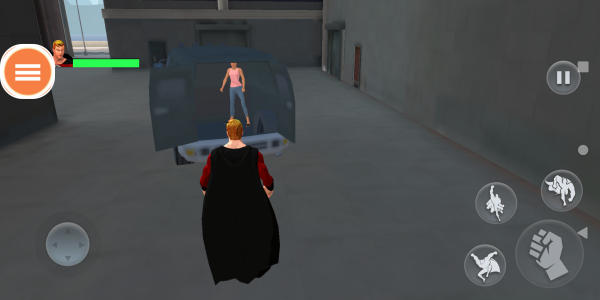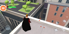 2.操控超人飞行至目的地后与坏蛋展开战斗,要留意保护自身安全避免受伤,同时关注左侧的绿色血条,一旦血条耗尽任务便会失败!