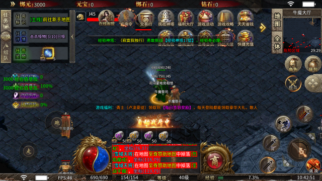 本服地图多,BOSS多,小怪爆一切,散人可追梦!并且各大地图BOSS以及盛南令还能产出福利券,福利超级丰厚,还有更多玩法需要玩家去自行体验!