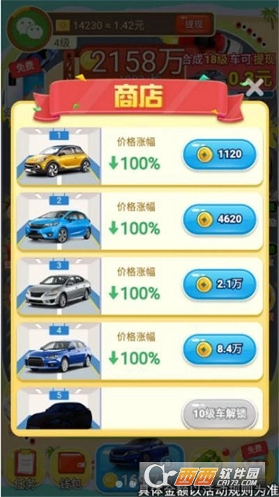 有趣又好玩的赛车合成挑战,从一级赛车开始进行合并,持续解锁更高级别的车辆