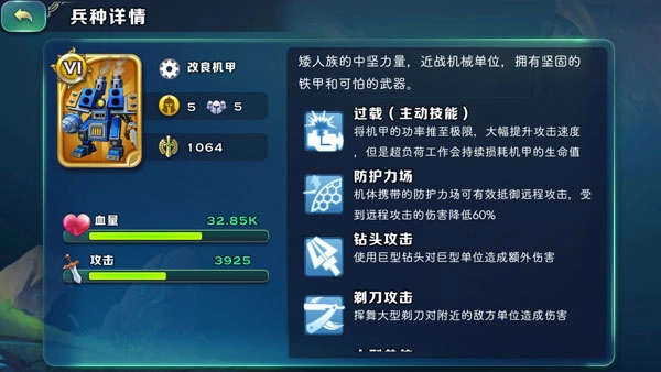 1、机甲与坦克在被摧毁后无法转化为伤兵,这使得矮人玩家对稀有资源的需求程度远远高于其他种族。