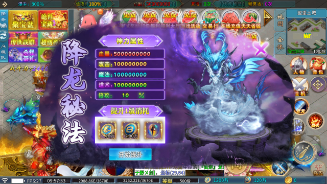 3、降龙秘法:消耗星髓币、道纹币与幽冥魂玉,在带来大量属性加成的同时,还能按百分比提升倍攻效果。