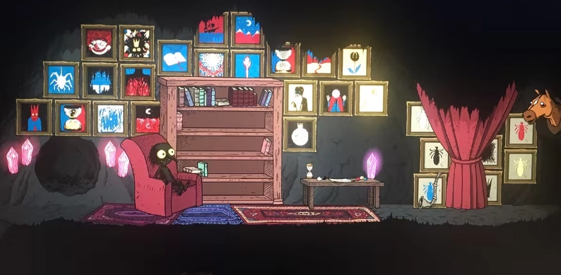 1、书架上的【想法】完成的部分会被划掉,之后需要完成的内容也可以参考这本笔记来实现;另外,给五种颜色的虱子各画一幅画是能达成成就的。