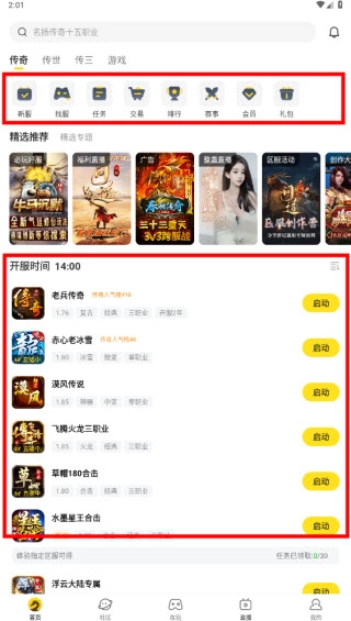 7、你也能在“社区”里和其他玩家交流分享,或是在“直播”中观看主播玩传奇。