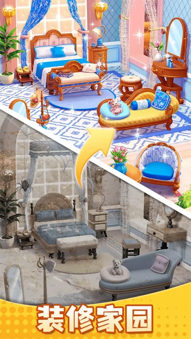2. 模拟经营的趣味体验:玩家能借助消除玩法获取的资源,参与到城堡的重建与装修之中,一步步解锁新的区域和功能。
