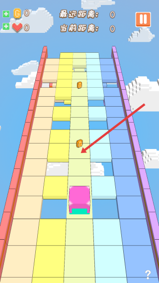 在前进的过程中,要留意跑道上出现的金币,操控粉色方块靠近并收集这些道具,它们可以用来解锁新的方块。