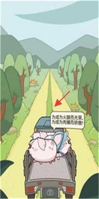 1、点击带有红箭头标识的卡车,将小猪运送过去,以此触发“为成为火腿而光荣”的剧情,推动流程向前进展。