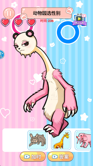 3. 在动物园的性选性别关卡里,玩家需对画面下方的动物开展性别分类工作,把它们分别安置到画面的左右两边。