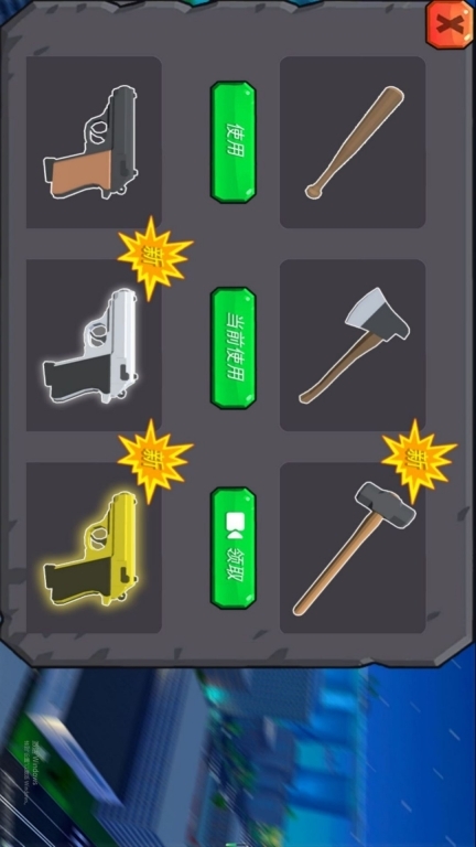 3、武器切换需视情况而定,近战场景可选用斧头、棒球棍,远程作战则更换手枪,以灵活方式应对不同状况。