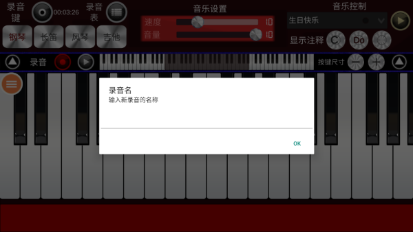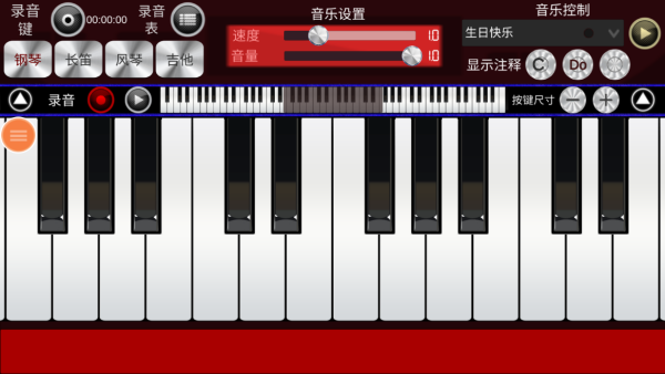4. 点击画面左上角的录音按钮,即可进入录音模式,把自己弹奏的曲目保存下来。