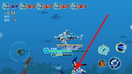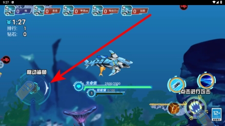 进入应用后,在战斗界面中,可借助左侧操作区域来控制机甲鲨鱼的移动,通过灵活调整其位置,以便更有效地应对战场局势,进而找到恰当的战斗时机。