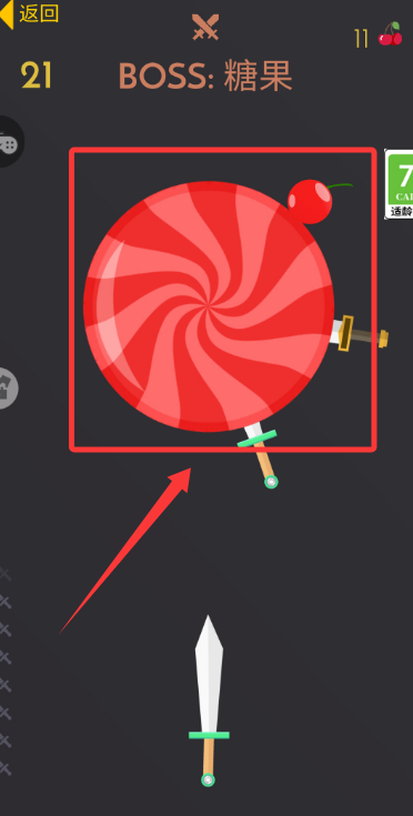 3、进行操作时要注意避开其他飞刀的落点,只要通过合理控制投掷并命中目标苹果,就能顺利完成任务。